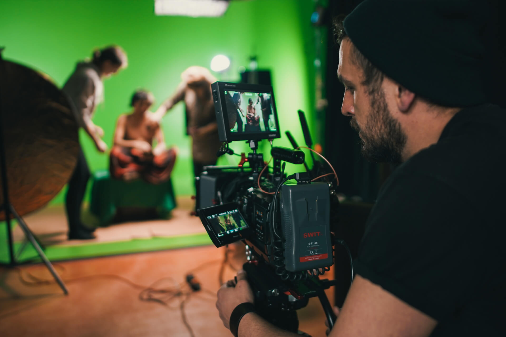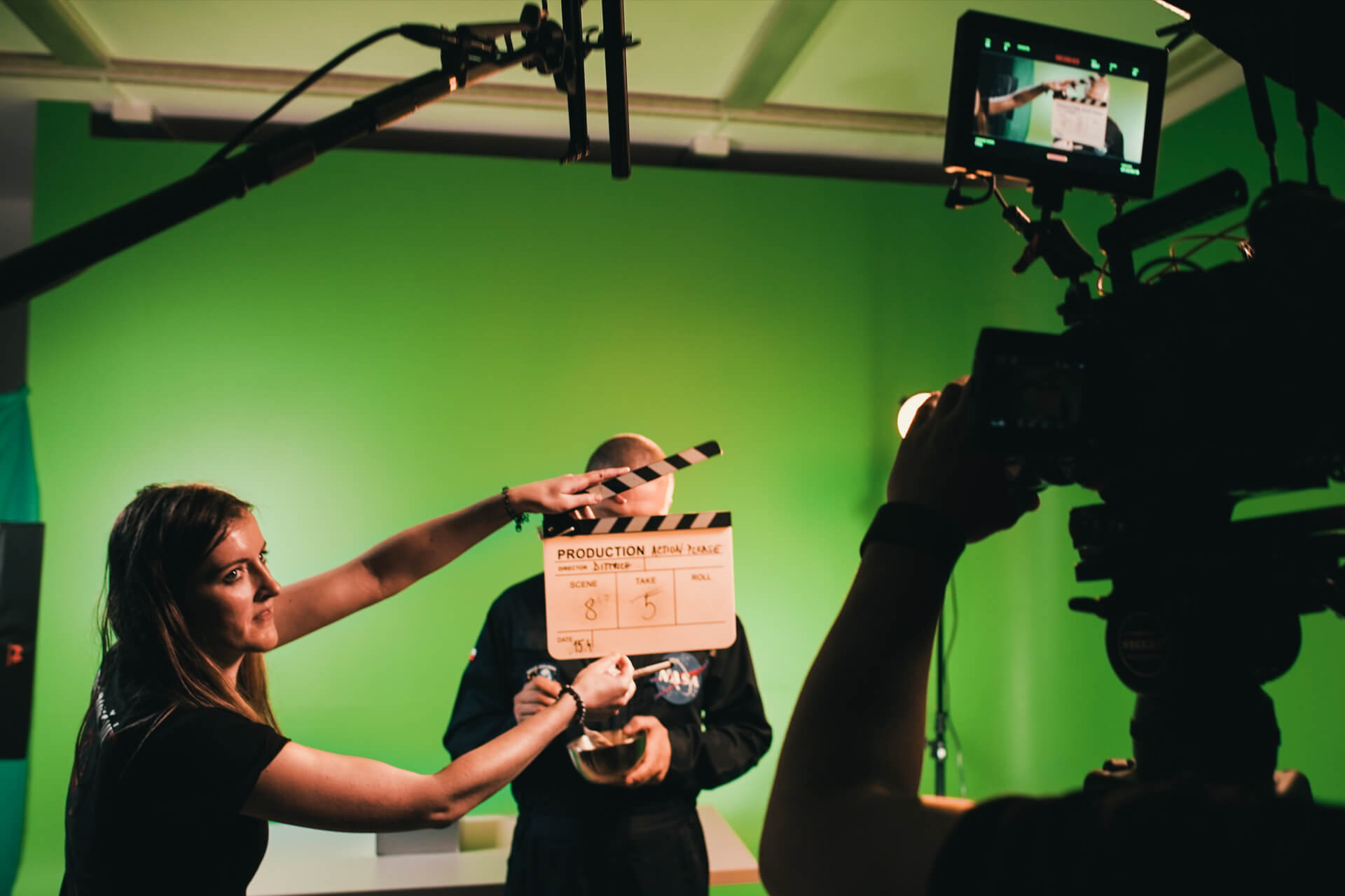 - green screen pozadí i podlahu